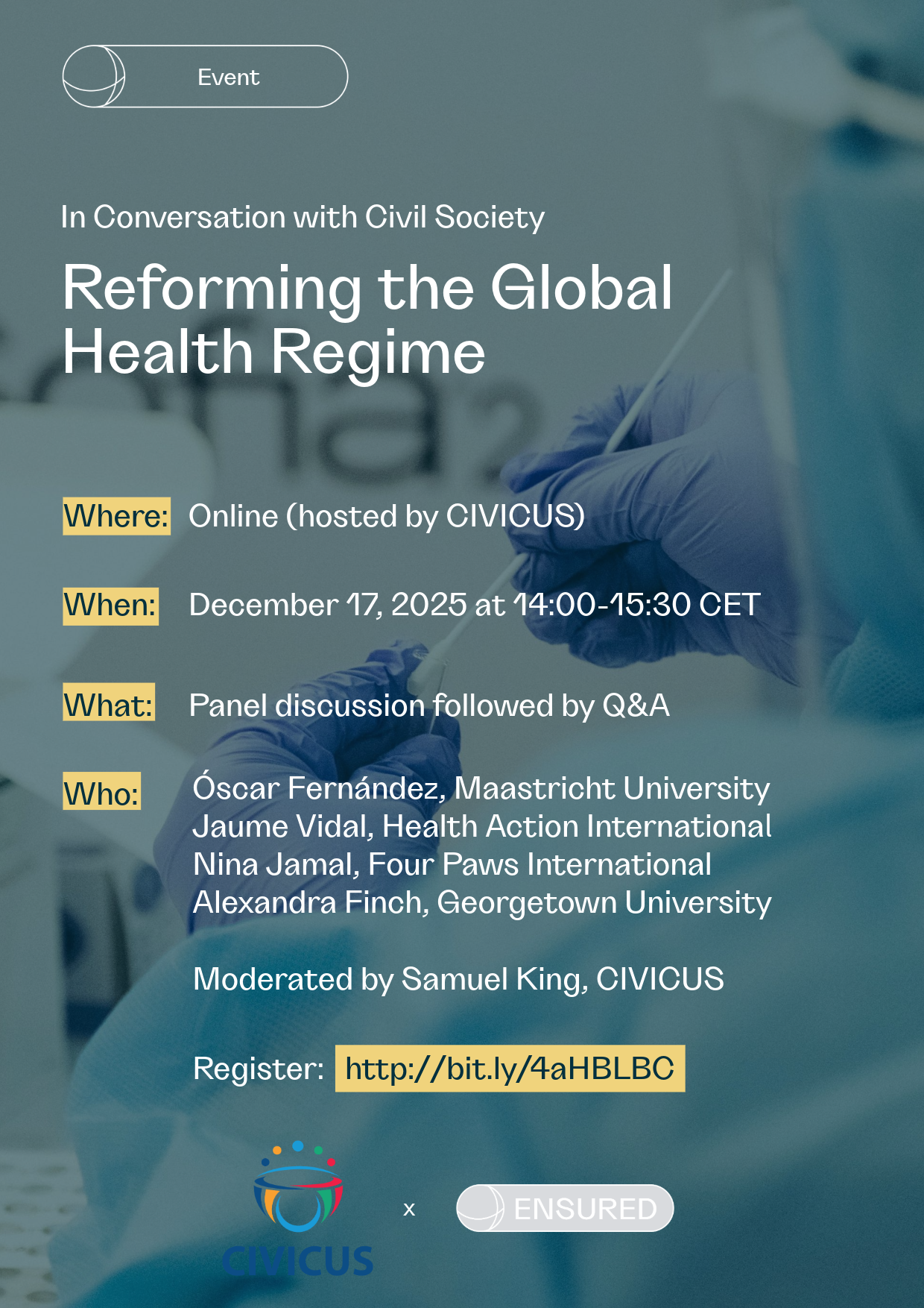 The COVID-19 pandemic laid bare profound failures in global health governance, from intellectual property rules that constrained equitable vaccine access to institutional weaknesses that left the international system struggling to respond effectively. This ENSURED webinar brings research and civil society perspectives together to examine how these shortcomings can be transformed into meaningful reforms that contribute to more effective, robust, and democratic global health governance