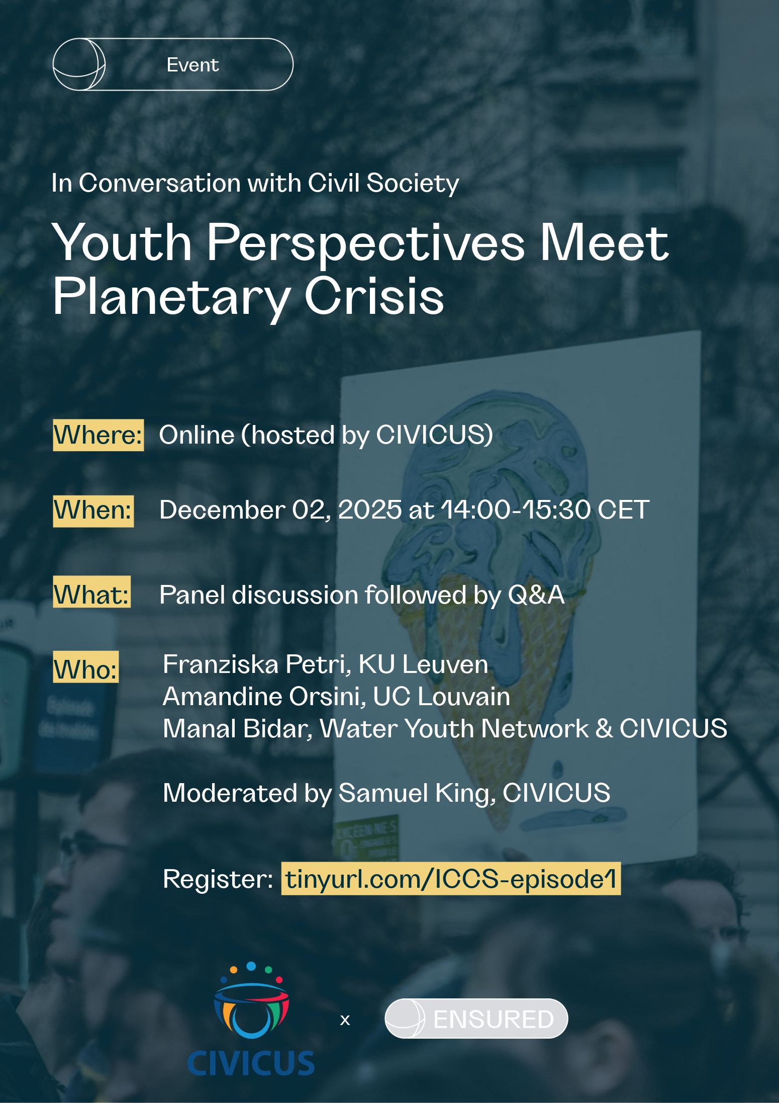 Just days after COP30 wrapped up in Belem, CIVICUS and the ENSURED project brought together researchers and a youth activist to discuss climate governance and youth participation.